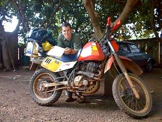 Spent the evening talking with Matthew from Pensylvania who is touring Africa on his motorbike having recently finished a two year stint with the Peace Corps (US equivalent to VSO). Had very little sleep that night so we had a lazy next day and couldn't be bothered to move on. After I had cooked dinner Andrew informed me of Steak au Poivre and chips on the menu. Oh, my favourite so we had two dinners that night. The steak was fantastic. Afterwards I got out the tape measure and despite having two dinners there were reductions in all areas measured. Oh yes, what a good day. Andrew has less "pneus" and is a number of notches smaller on his belt. (No further clues for purposes of the sweepstake!) We joined Stefan and Katrina from Austria for the evening to hear a local band play their drums. It turned out to be a very touristic affair - not quite the true African experience we had hoped for.