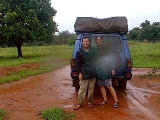 The night was disturbed by grunting from the lake. It was a group of local hippos having a shindig. Thank goodness we have a roof tent. In the morning we visited the impressive Chutes de Karfiguela via an interesting muddy road. In our "quart-quart" it was fine and we were soon assisting the two wheel drive vehicles out of the mud. At the next peage we struggled with our French before the chap said "oh, you speak English". Humpf.