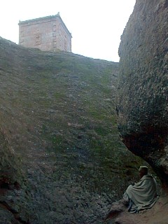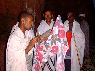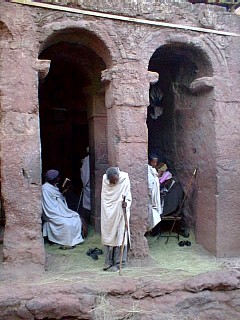 | Plenty of beggars outside the churches in Lalibela | St Georges church - carved out of the rock - very impressive | More beggars | The inner sanctum of the tomb of King Lalibela (Honey Eater) - off limits for women as he was poisened by one. | Chanting from the Christian Orthadox bible |