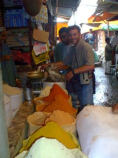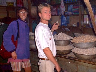 | Dennis prefers the spices | Bought some coffee beans - green - for roasting later | Basket sellers, etc. in the back streets | You can't help having a laugh with the kids | Aaron and Jacs hanging around the incense stall - man |