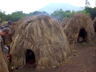 | Local hut | Mursi hair styles | Mursi homes | Showing the Mursi how the camera works | The Mursi get the Dulux out |