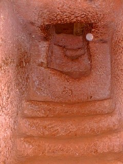Mario was our guide and he was late so someone else showed us the way to where we paid our 100 Birr each to visit all eleven churches. (Video cameras are an extra 150 to 1000 Birr). The first church was St Georges which is probably the most widely photographed - probably as it is the only one without scaffolding around it. In the shape of a cross it is a fascinating example of craftsmanship.
