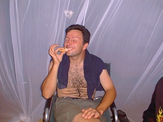 A few more delicious days followed - bacon butties, swimming in the gloriously warm sea. Tried to visit Wolfgang (of the desert convoy) at Badala Beach Bar a few times but failed miserably. Each time we were told "he's due any minute". That is African optimism for you, translated into "they haven't a clue". Had a BBQ with Georgia and Richard whilst we watched a spectacular lightening display in the distance for a couple of hours. Suddenly the storm was with us and it was "everybody panic". The wind howled and the rain just went whosh and soaked everything in seconds. Fortunately the tent survived.