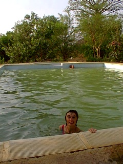 I had read that Georgetown was an old colonial town that is now rather sleepy. It is on an island and I expected it to be like St Louis in Senegal. To get to the island one has to take a ferry. It was only when we reached the second ferry on the other side of the island that we realised we had driven through the town. Sleepy is an understatement - dormant more like. Found Bird Camp Safari where we eventually camped for three nights. It had a swimming pool where we could be found a great deal of time in the heat of the day with a few beers. The camp owner works for the UK cabinet office and told us a few interesting stories!!!!!! Chris turned up along with six other bikers from Germany. Wow, it's hot in the car with air-con. I would not like to be in full leathers on a bike in this weather. It is really, really, really hot now. I didn't know it was possible to be so sweaty and have moisture dripping off your eyelids. We were relieved one night when the sun dropped out of the sky (at 7.30pm) and the temperature fell to 38 degrees C.