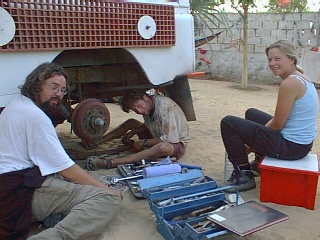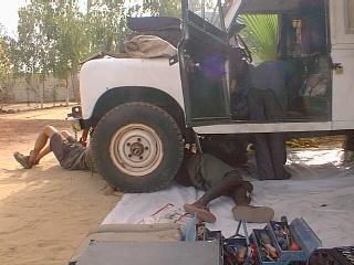 Andrew helped Noel with some work on Turtle. The front axle was replaced along with the bushes then the gearbox had to come out for a cog replacement. What a major job and the help of Mr Farty (!) and his team was required. Taking a gearbox apart in the sand was quite a worry for Noel but all was well in the end. We had some work done on Punda by Trevor Bush at the SOS Camp as recommended by the Viking and Chief convoy. The exhaust pipe was welded along with the tea-strainer (more importantly) and the engine oil changed.