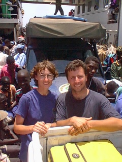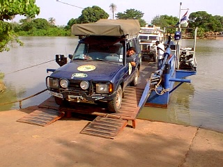 To reach the capital of Banjul it is necessary to take a ferry from Barra. The ferry leaves every two hours but only carries 2 cars and 2 lorries along with as many people as can be squashed on. It is possible for a lorry to wait up to a week to get across. Fortunately the tourist cars go straight to the front as they are of financial benefit. We just missed one ferry so we spent a couple of hours chatting to the local children. Andrew almost caused a riot by giving one boy a gift. Practically everyone else went berserk - they all wanted one! One of the chaps - Janko, is looking for a wife. He is 27 - any takers? He asked me to ask my friends if they would consider him as a husband (address can be supplied). Every child we met gave us a piece of paper with their name and address on it. They expect us to be their sponsors.