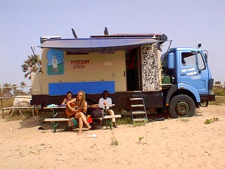 Searched out Harry & Co and spent an evening with them. Harry had malaria - a good excuse for the stand up, we thought. He was not a well man at all. His truck has been turned into a travelling party machine with disco and food. Their plan is to serve various events.