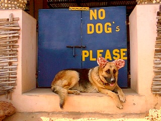 The campsite has a few pets. There is a viscious looking Alsatian called Tina who we renamed Mini Mouse as she wore colourful earmuffs during the day to keep out the mites. A scabby old dog visited us at every mealtime so we called him Oliver. One morning I was awoken by a cat on the other side of the tent mozi net. Don't know how the cat got up there as it is meant to be an animal-free zone. We called the cat "alarm-clock".