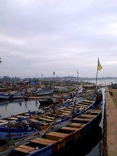 Accra isn't the easiest town to drive around but we managed to get through it and out on the road towards the beach and "Big Milly's Backyard". What a great place. It is full of English speaking tourists. I don't know why I was so surprised - the English speakers usually go to English speaking countries. There aren't many of us daft enough to go to French speaking ones! That night we had our Tilapia. What a glorious fish - should have known there wouldn't be many bones - I was using a Keith Floyd recipe. He wouldn't be cooking something which took ages to eat and therefore interfered with his wine drinking! We finally opened the bottle of Sauvignon Blanc that we have been carrying around with us since The Gambia waiting for a special occasion. We had that occasion - we are in Ghana and it was a real treat.