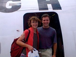 In the morning we were up early to pack up and get over to the airport as we had been told that the airline overbooked heavily and we had to be sure of getting a seat. Massive queues outside the airport awaited us and we had to fight off a load of locals who thought we were queue jumping when we walked to the front. They couldn't quite grasp the fact that the white guys were not wanting to catch the London flight that they were all queuing up for. In the departure lounge the cafe was being refurbished and we had a three hour wait and a measly snack bar for sustenance. The excitement rose as we moved to the terminal but fell again when they announced a delay. By midday we were on the aircraft where we had the choice of seats because it was only a third full. So much for overbooking. The captain welcomed us, apologised for the delay and said "there was absolutely no excuse for it". One wonders what they were hiding! The DC10 was fabulous. There was loads of leg room, duty free galore and a delicious five course scoff with South African wine. What could be better? With the reduced passenger compliment the cabin staff service was first class. However, there was no film - probably "no excuse for it". As we took off we waved goodbye to West Africa and headed towards winter.
