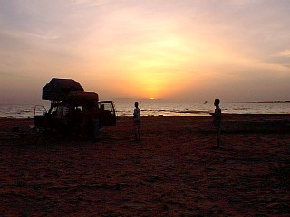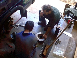 The following week was spent at Tipsy and Raju's garage doing some work to the car. Many travellers have reported having problems with their roofs following their journey from the north. The roads apparently are so bad and the weight of the roofrack gives the joints holding the roof up a hard time. We decided to strengthen our pillars by welding on some supporting plates. The only problem is that you have to remove the roof lining, the dash board and the windscreen to do a professional job of the welding. Our anticipated two day job turned out to be seven as intricate work followed thorough preparation. The chap doing the welding, Nashton, did an excellent job and we were pleased to have done the work. We were able to park the car in an undercover area of the workshop and were left to get on with the work and call in Nashton for the welding. It was good to have an opportunity to do other maintenance chores such as put another three coats of varnish on the wooden table and to fit some big mudflaps. Gordon spent the week re-replacing his shock-absorbers as his new ones didn't fit sufficiently with his spring arrangement. When you put heavy duty springs on a car you cannot fit ordinary shocks and he ended up buying some shocks for a Toyota and welding new eye pieces on. It's common to do so in Africa.