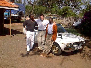 Upper Hill Campsite provided us with a room for the duration and our evenings were spent either tapping on the laptop or going out with the locals. Raju invited us to his home for dinner and we had another lovely evening with his family. They are such lovely people and have agreed to let us cook for them next week. One evening was spent at the cinema with Christine and Thomas from Switzerland and another evening with John the taxi driver and Gordon. John took us to a bar/restaurant/night-club popular with the locals. We were the only three muzungos there and it felt a little odd. The food was a local dish - one big tilapia with ugali which you just tucked into using your fingers. The meat dish followed in the same format only this time eaten with chilli sauce. The beers kept flowing and we spent a couple of hours on the dance floor bopping away to local tunes, not understanding a word of the kikuyu or kiswahili words that were being sung. The locals were so welcoming - they liked dancing with the white guys! Later in the week at the campsite we met Eric and Miriam from Holland who said they had read our website while they were preparing for their trip. Hooray, we're famous. We were as delighted to meet our site readers as they were to meet the authors. We met Dennis and Aaron at the campsite too who's "ed-venture" through Africa is for the purpose of producing material for use in schools. They too are going north and were facing the same problems as us with the Sudan visa.