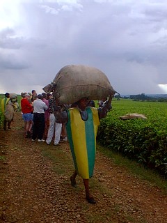 Wages are determined by the quantity of leaves picked. Each kilogram fetches 3.64Ksh and after a nine hour shift a picker can expect to earn around 300Ksh (£3). They consider this to be a good wage and can live adequately on it. Picking tea must be one of the most boring jobs on earth and the pickers are out in all weathers but they seem quite happy. This is a desirable job in Kenya. As the workers are brought in from various parts of the country they are provided with a home, schooling for their children and health care.