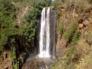 Late afternoon we left to make progress towards the north of Kenya. There were only two hours of light left and just enough time to make it to Thompsons Falls. We were only a few hours north of Nairobi and the landscape had turned distinctly 'wild west'. It was barren and vast with the occasional pig ranch. With Dixy Chicks on the stereo all was quite appropriate. By the time we reached the T-Falls Hotel there was a power cut so we had a very average dinner by candle light. This is the highest town in Kenya and the night was really cold and after a very average breakfast we had a quick peep at the falls before continuing towards Maralal.