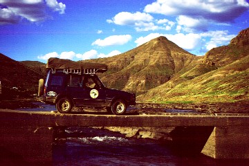 The morning was lovely and we set off early expecting the journey to Sani to take all day. However, the roads were good and we arrived at lunch time having given a total of six people a lift to various locations en route. One chap was a Swiss character (Erve) who travels for six months of every year to avoid the European winter. It would seem that being a Swiss farmer is a lucrative business! Just as we arrived at Sani the weather closed in. The clouds dropped and visibility reduced to a few metres. At least we had a good excuse when a chap came running after us shouting at us for crossing the border into SA illegally. Apparently we had driven past the border post without realising it. Oops, after a quick reverse and big apology we went to the Sani Top Lodge where we had planned to spend the night. However, the drop in temperature and the absence of the apparently spectacular view meant that the camping and sightseeing options were out. We decided to cross the border and get down the mountain and into some warmer clearer weather.