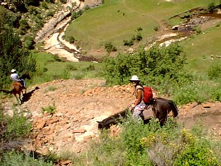 We felt like the Lone Ranger riding through the rocks along the mountain side. Goodness knows how those cowboys and Indians managed to stay on their horses whilst having a fight. Up and down the mountain was pretty hairy, particularly when the horses foot slipped on the rocks. However we both managed to stay upright and didn't suffer greatly from saddle sore. Four hours was enough for a first go and trekking around such beautiful countryside was a real treat.
