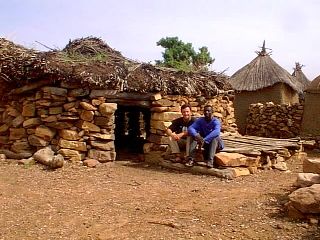 That afternoon we left for the first village of Sogolo. It is where Sekou's granny lives so he took her some food and we looked at the view from her roof. We also saw the "thinking house" (casa parlabaler), the "medicine house" (gnuna) [not sure of the spellings as our guide could not spell!], the mosque, the catholic church and the animist church. Then it started to rain and Sekou took us to his brothers hotel in the hope of us buying drinks and staying the night - which we didn't. It had been planned that we would go to the second village of Djiguibombo (Dji) and spend the night there. However the road which was previously "very good" would now be "impossible" to drive along so we would have to wait until the morning. This all coincided very nicely with the fact that the village was having its annual bash that night and if we'd gone to Dji Sekou would have missed the celebrations. We were not in a position to argue about the state of the road and at this point we had already paid him a third of the fee. Instead we went to Camping Togona which was not owned by one of Sekou's friends or rellies.