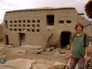 We were met by the tourist officer, a demand for £2 each which was "for the commune but includes a guide" and a question as to whether we wanted to go to a circumcision ceremony! Cross-legged, Andrew managed to squeak "no, thanks" and off we went to the only campement in town where we found cold beers and plenty of flies. You get given beer mats to place on the top of your glass to keep the flies out. A late night party (part of a wedding ceremony) and the local turkeys ensured we had a sleepless night before being met in the morning by our English speaking guide who took us on a fascinating two hour tour of the town.