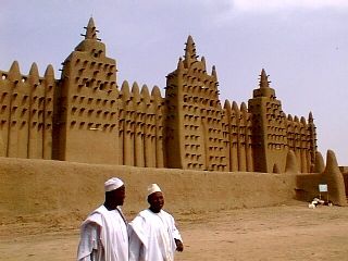 This place is incredible. The main square has a huge mosque which has to be re-mudded each year after the rainy season. The twisting back alleys hide away goldsmiths and Koranic schools between the houses. Having a guide was essential to get a peep inside the houses. Water drains off the houses via pipes directly over the alleys and sewage also ends up in the alleys, hence a dreadful stink and a reason for the flies. A few areas of the town had drainage channels which was great for hygiene purposes but impossible for those on scooters. I don't think the Arabs were aware of the Romans - Pompeii had a better drainage system! We could walk around freely and not be pestered by the locals. It seems that the compulsory guided tour is working well (only initiated recently). Walked amongst Fula people with blue lips and there was even a wedding party. The market place was bustling and the locals were haggling over disgusting bits of intestines. This place is just not to be missed. It was like something out of "The Life of Brian" although I couldn't see the beard sellers anywhere.