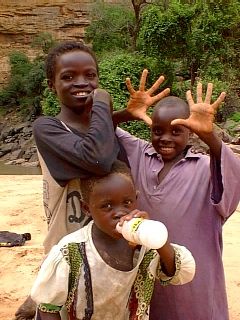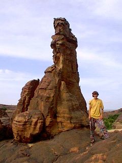 Bar Bozo is the place to go for a bevvy and to have a look at the Badi River. It is also the place to go to be badgered by locals offering pirogue rides over the river to visit a Tuareg village. We agreed to go although the local wasn't best pleased with our offering of a quid but it was a quid well spent. A very interesting trip indeed seeing how the Tuareg people live. Mopti lies at the intersection of the Bani and Niger Rivers. It is also the place to catch a ferry up to Timbuktu (3 days each way - horrendous). After dipping toes in the Niger we were back in the pirogue (having no motor is so boring) watching lonely flip flops (partners of those lost in the Mauritanian desert, no doubt) float by in the murky water. Delighted to get back in to Punda we headed off on the road to Bandiagara and a delightful campspot on a rocky escarpment.