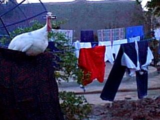Turkey guarding the washing | Excellent camping spot. Great views and rock formations | Locals come on up in the morning asking if we're doctors | Flood water after a particularly heavy downpour - Bandiagara | Kids in Bandiagara coming to see what's going on. |