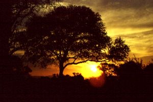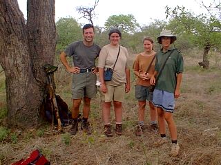 The next two days were spent doing more lectures but the material was much lighter - nowhere near as intensive as the previous week. We learned about the weather, astronomy, how cars work, medical aspects, how to run a camp, the qualities required of a field guide and navigation. Very interesting stuff. The "bush practicals" over the next few days enabled us to practice some of the things we had learned. Navigating with the help of lichen, the sun and termite mounds was amusing. Andrew became known as CNO (chief navigation officer) as he was the only one of us going in some reasonable direction. We tracked wildebeest, made ropes out of bark and did some painting with dyes made from bark and leaves. Further bushpracticals were curtailed because of a couple of days of rain. It was miserable and grey - just like being back home. However the electrical storms were spectacular. At one point there were four storms around us - it was like a Jean Michel Jarre concert without the music.