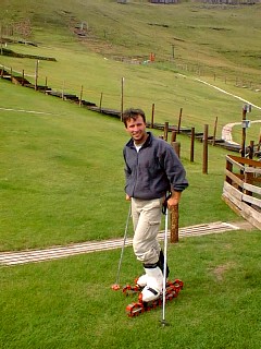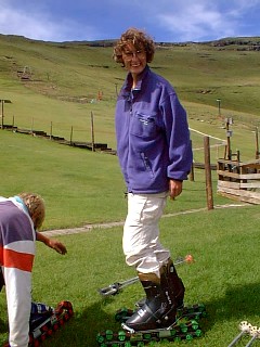 By the time we had descended from our hike it was lunch time and considerably warmer. Perhaps we had got used to the temperature. Skiing in Tiffendel is possible for around 100 days per year in the winter but as this was summer we decided to have a go at grass skiing. The fact that this is really a beginner resort was in our favour as we donned the grass skis and headed off to the nursery slopes. Snow and grass skiing couldn't be more different. You can't turn on the things and suddenly a green run felt like a black one as you hurtled down the slope believing that falling down would be the safest way to stop. After an hour or so we got the hang of it. The drag lift was one you hold onto with your hands rather than the usual type which you sit on. The arms ended up hurting more than the legs. What a laugh though.