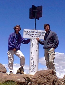 The campsite is basic but adequate and cheap (at 35 rands a night). The night time temperature dropped though and we were glad of a really thick duvet (thanks for the recommendation Richard & Jo). Once the initial frost had lifted in the morning a beautiful blue crisp day lay ahead. We had tea and delicious melk tart (S. African favourite) with Mari before taking the fun and very very steep drive up to Tiffendel - the local ski resort. Phew - the jumpers went on along with the fleeces as we arrived at 2700 metres. Coffee and yet more cake awaited which we burned off on a short hike up to the peak of Ben MacDhui at 3001m (Eastern Capes highest point). The views were stunning and you could see over into Lesotho which was to be our next country.