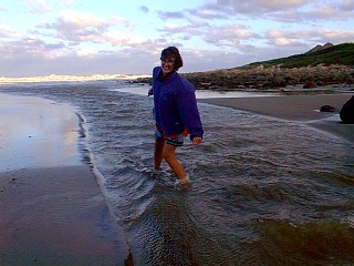 We had come to the beach to do some swimming in the Indian Ocean but the next morning greeted us with cold (25°C) windy weather. We took a walk along the beach and dipped our toes. It wasn't as warm as expected and certainly not as blue. More of a brown due to muddy river water joining the sea! The ice cream shop was shut too! Feeling sorry for ourselves we fought the wind and returned to the car. Andrew spent the rest of the afternoon lying down while James and I spent the afternoon on a very serious job - catching up with important gossip at the local cybercafe. That night we had a braai in the rain.