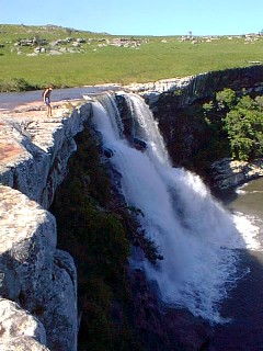 The afternoon was spent walking along the riverside passing the assortment of waterfalls. Regular rests were necessary as we were both feeling 50% so a bit of sunbathing was the order of the day. The park here is very different to all the others we have been to. There are no predators so it is safe to go on independent walkabouts. There is also not a great deal of life but the zebra, wildebeest and blesbok herds we spied are probably the safest in the country. However, they were quite twitchy and the only way we could get close to them was to pretend to be a pantomime horse. As Andrews back was playing up I was the back end!
