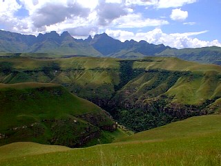 The Drakensberg is a most fantastic mountain range - majestic and imposing but highly inviting. Gordon had suggested we climb Cathedral Peak but Andrews back was playing up so we drove up Mikes Pass and set up the car for a day of relaxation amongst these beautiful mountains. The weather was lovely and stayed that way for the entire day - a rare treat we understand. The day wasn't much fun for Andrew who spent most of it on his back in the rear of the car.