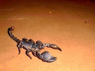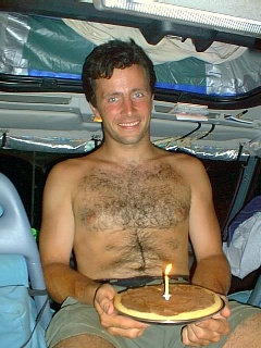 On the 13th it was Andrews birthday and we had a smashing day game viewing in the park. We saw monkeys, baboons, hippos, gazelles, various types of deer, warthogs and loads of birds. The park had officially closed at the beginning of June because of the rainy season but they let in the odd car if they think you can cope with potentially muddy situations. So far the mud was minimal and Punda delighted in the odd puddle. I had hoped to find a birthday card and a fly swatter for a pressie but this is Africa. Andrew did have one card to open though from his dad. I made a birthday cake in the outback oven - well, more of a pancake! It tasted good though and there was a candle too. I expect the wish was for a cake that rises next time. That night we were entertained by a giant scorpion and blue and yellow lizards doing press-ups.