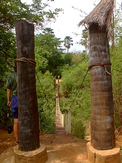Retreading Noels tyres | Fixing the sidewalls on Noels tyres | A ropey bridge in Niokolo Koba National Park | Hurray, we get to use the winch | One of the neighbours in the park |