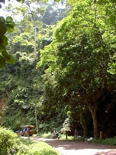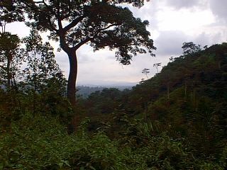 Drove on towards Kpalime and then up the hill towards Kluto. The road was built at the beginning of the century by the Germans who had colonised this area. You can spot European influence everywhere. Indeed, they are the only buildings that aren't falling down. This is spectacular countryside and is "famous!" for Togo's butterfly collection. Kpalime, Atakpame and Badou form the areas "cocoa triangle" - an area of vast coffee, cocoa, avocado, banana and citrus fruit production. Mont Kluto has stunning views over Togo and over Ghana to the west. You can supposedly see Lake Volta (Ghana) but I thought that a number of mountains rather blocked the view.